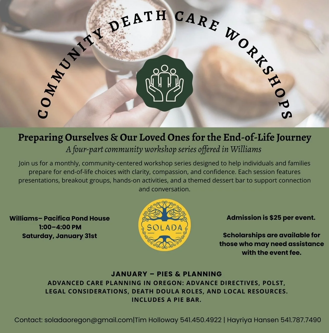 SOLADA is committed to education and resource building. If you have an event that supports the mission of Southern Oregon Living and Dying Alliance, you may submit below to be promoted on our calendar.